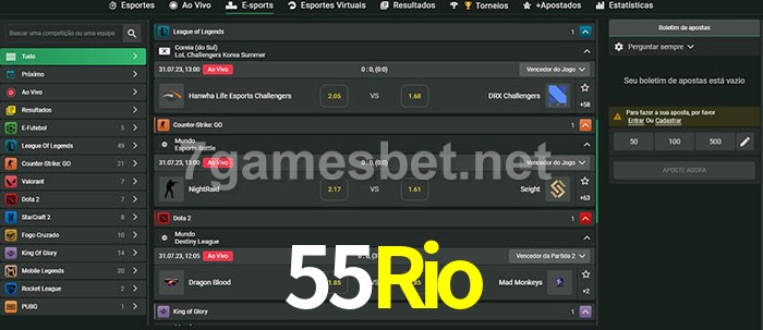 O 55Rio oferece uma grande seleção de opções de apostas em e-sports com probabilidades competitivas